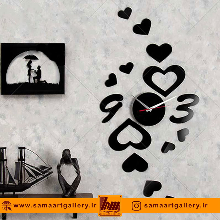 ساعتهای دیواری گالری هنری سما در انواع :پلکسی گلس براق درجه یک تایوان مشکی و طلایی و نقره ای و چوب مشکی و سفید شیری ساخته شده است.