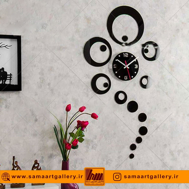 ساعتهای دیواری گالری هنری سما در انواع :پلکسی گلس براق درجه یک تایوان مشکی و طلایی و نقره ای و چوب مشکی و سفید شیری ساخته شده است.