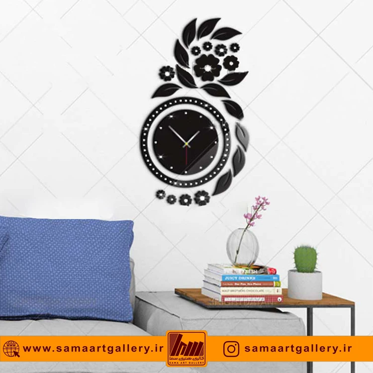 ساعتهای دیواری گالری هنری سما در انواع پلکسی گلس براق درجهیک تایوان (مشکی، طلایی، نقرهای) و چوب مشکی یا سفید شیری تولید میشوند.