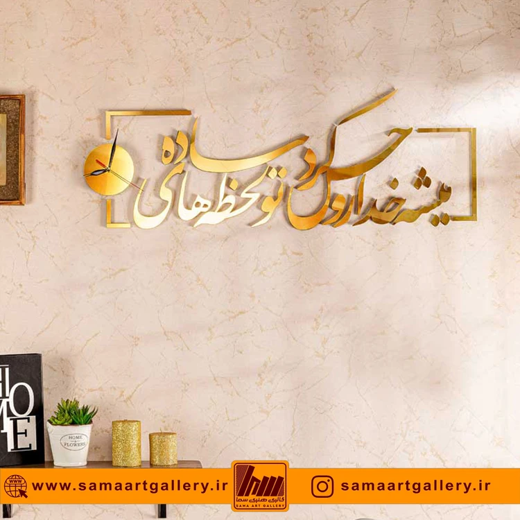 ساعتهای دیواری گالری هنری سما در انواع :پلکسی گلس براق درجه یک تایوان مشکی و طلایی و نقره ای و چوب مشکی و سفید شیری ساخته شده است.