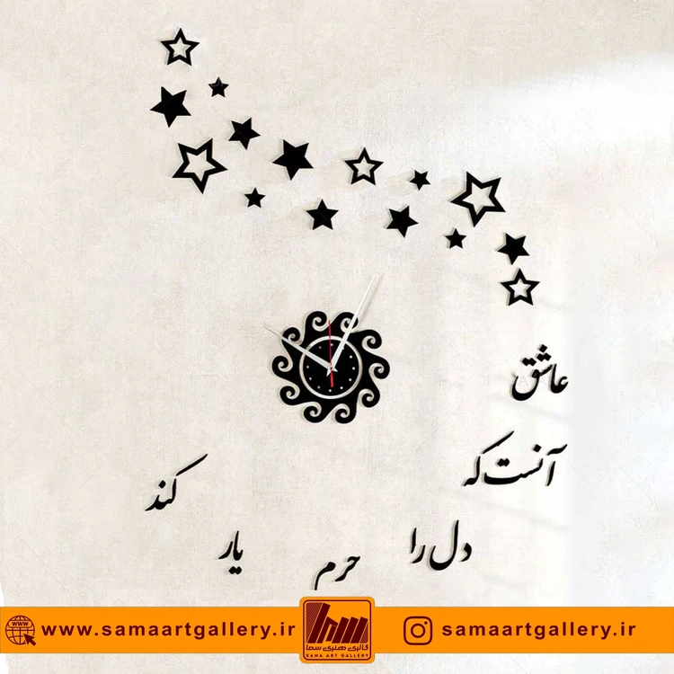 ساعتهای دیواری گالری هنری سما در انواع :پلکسی گلس براق درجه یک تایوان مشکی و طلایی و نقره ای و چوب مشکی و سفید شیری ساخته شده است.