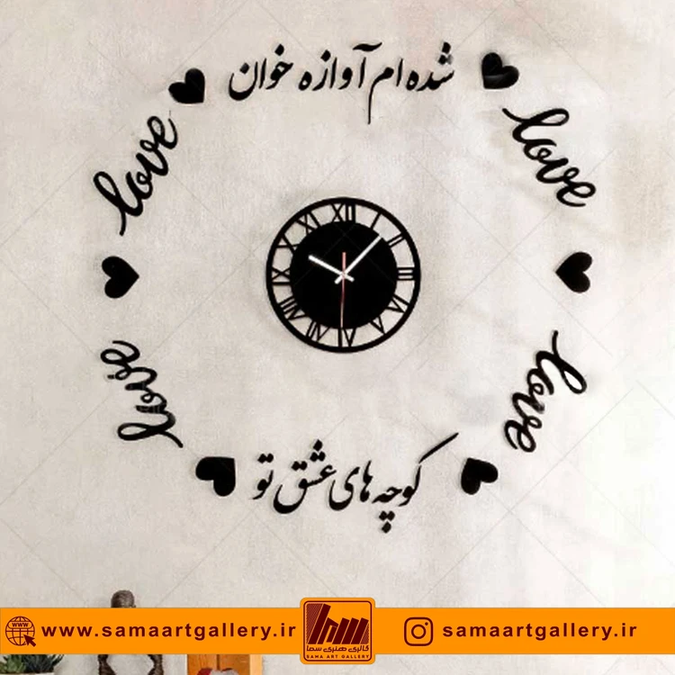 ساعتهای دیواری گالری هنری سما در انواع :پلکسی گلس براق درجه یک تایوان مشکی و طلایی و نقره ای و چوب مشکی و سفید شیری ساخته شده است.