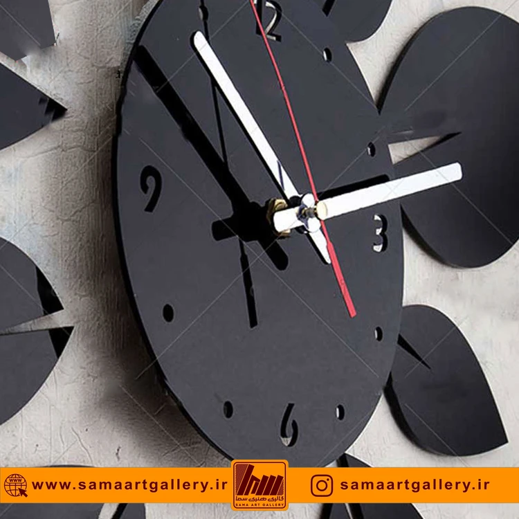 | جنس ساعت | چوبی مشکی (ام دی اف ۳ میل) + طلایی آینهای (مولتی استایل) + نقرهای آینهای (مولتی استایل) + مشکی براق (پلکسی گلاس تایوانی) |