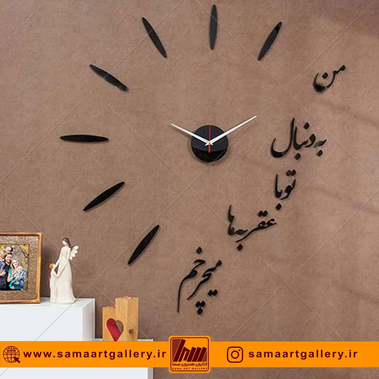 ساعتهای دیواری گالری هنری سما در انواع :پلکسی گلس براق درجه یک تایوان مشکی و طلایی و نقره ای و چوب مشکی و سفید شیری ساخته شده است.