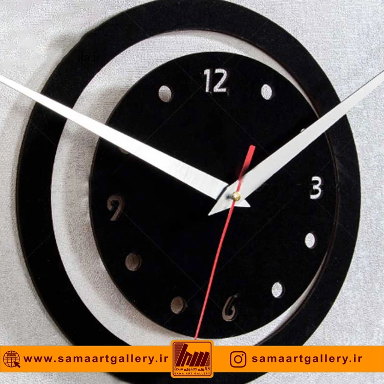 ساعتهای دیواری گالری هنری سما در انواع پلکسی گلس براق درجه یک تایوان مشکی و طلایی و نقرهای و چوب مشکی و سفید شیری ساخته شده است.