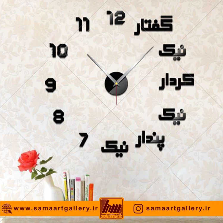 ساعتهای دیواری گالری هنری سما در انواع :پلکسی گلس براق درجه یک تایوان مشکی و طلایی و نقره ای و چوب مشکی و سفید شیری ساخته شده است.