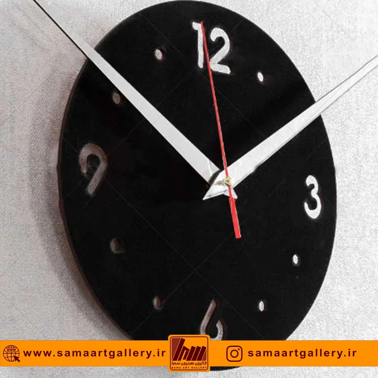 ساعتهای دیواری گالری هنری سما در انواع :پلکسی گلس براق درجه یک تایوان مشکی و طلایی و نقره ای و چوب مشکی و سفید شیری ساخته شده است.