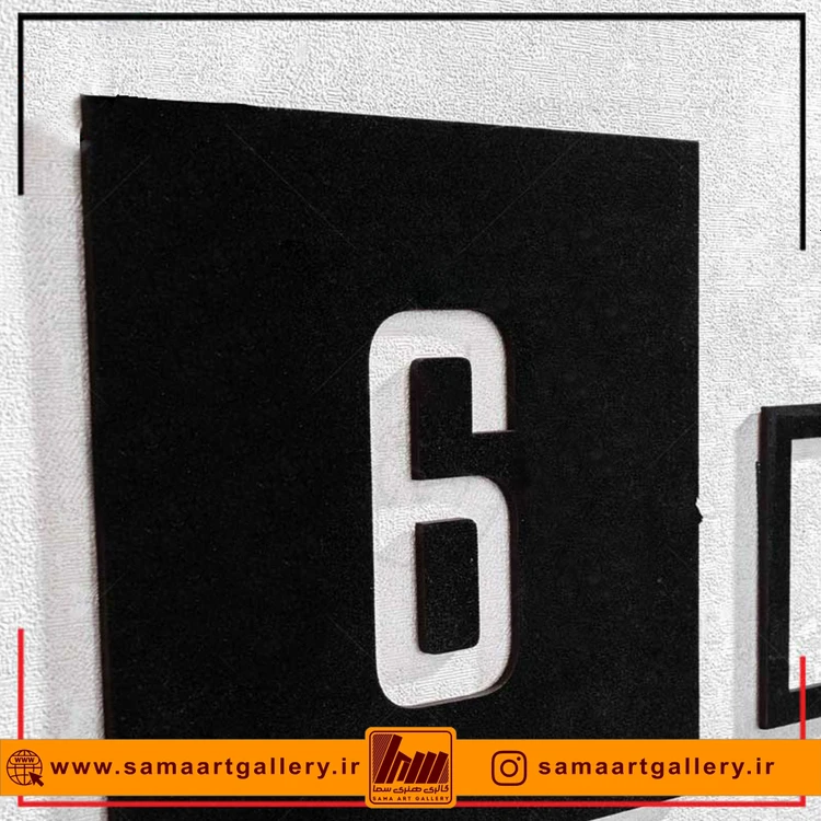 ساعتهای دیواری گالری هنری سما در انواع پلکسی گلس براق درجهیک تایوان (مشکی، طلایی، نقرهای) و چوب مشکی یا سفید شیری تولید میشوند.