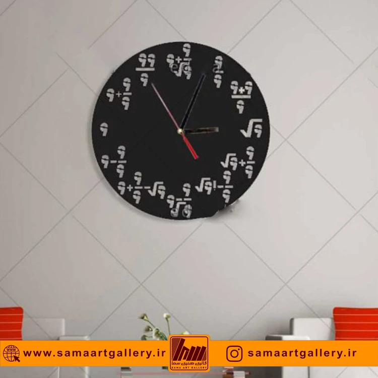 ساعتهای دیواری گالری هنری سما در انواع پلکسی گلس براق درجه یک تایوان مشکی، طلایی، نقرهای و چوب مشکی یا سفید شیری تولید میشوند.