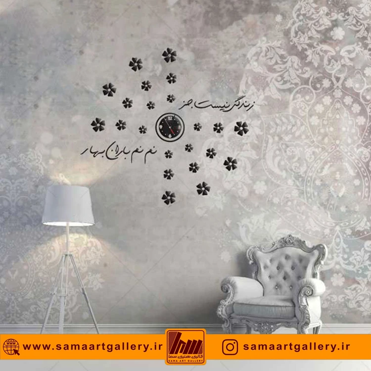 ساعتهای دیواری گالری هنری سما در انواع پلکسی گلس براق درجه یک تایوان مشکی و طلایی و نقرهای و چوب مشکی و سفید شیری ساخته شده است.
