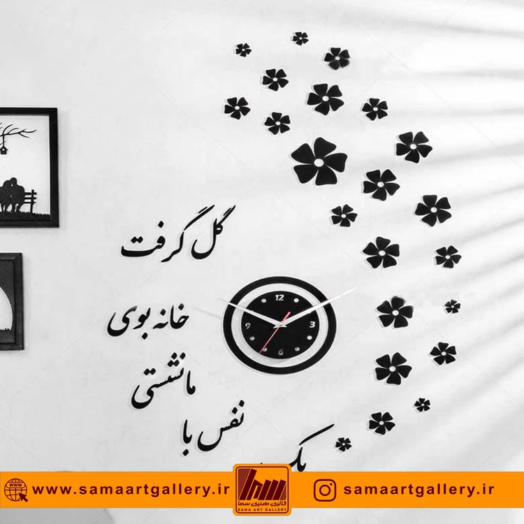 ساعتهای دیواری گالری هنری سما در انواع: پلکسی گلس براق درجه یک تایوان مشکی و طلایی و نقرهای و چوب مشکی و سفید شیری ساخته شده است.