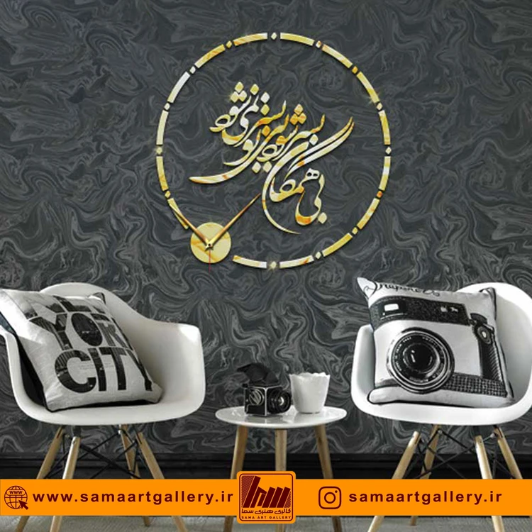 ساعتهای دیواری گالری هنری سما در انواع :پلکسی گلس براق درجه یک تایوان مشکی و طلایی و نقره ای و چوب مشکی و سفید شیری ساخته شده است.