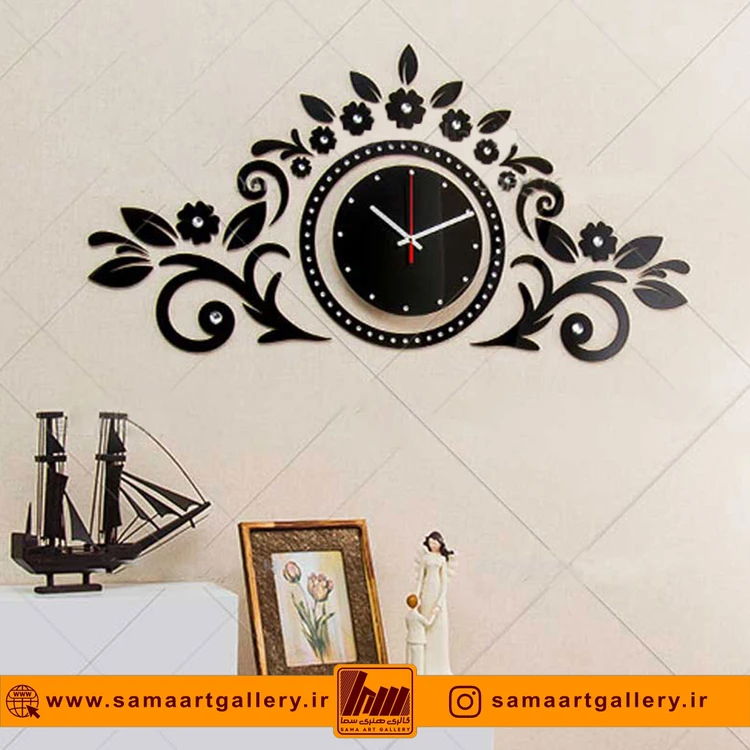ساعتهای دیواری گالری هنری سما در انواع پلکسی گلس براق درجهیک تایوان (مشکی، طلایی، نقرهای) و چوب مشکی یا سفید شیری تولید میشوند.