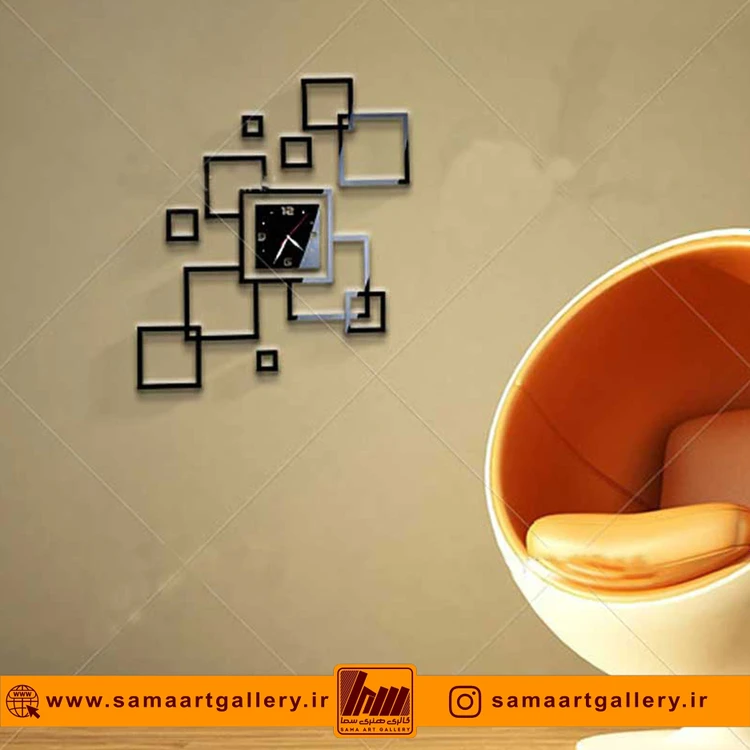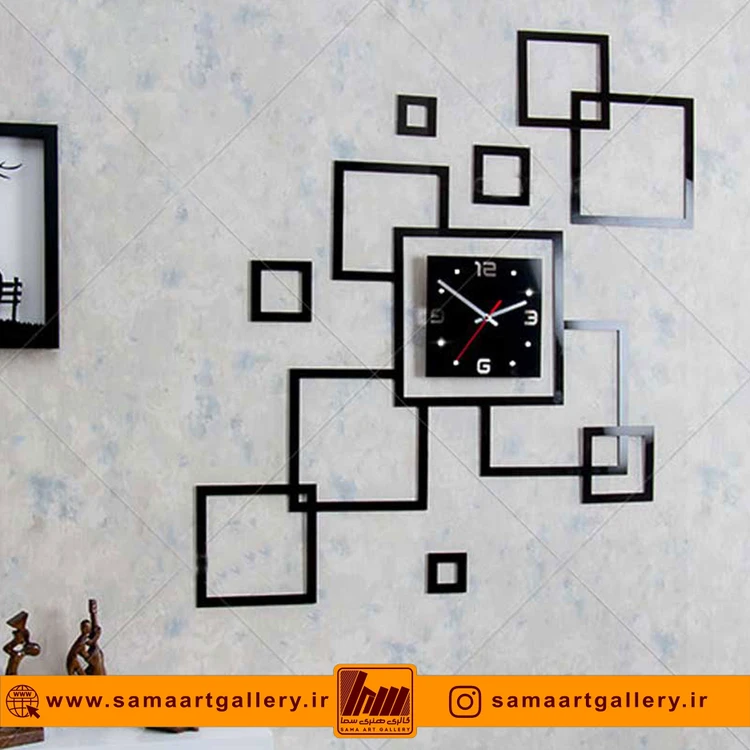 ساعتهای دیواری گالری هنری سما در انواع پلکسی گلس براق درجهیک تایوان (مشکی، طلایی، نقرهای) و چوب مشکی یا سفید شیری تولید میشوند.