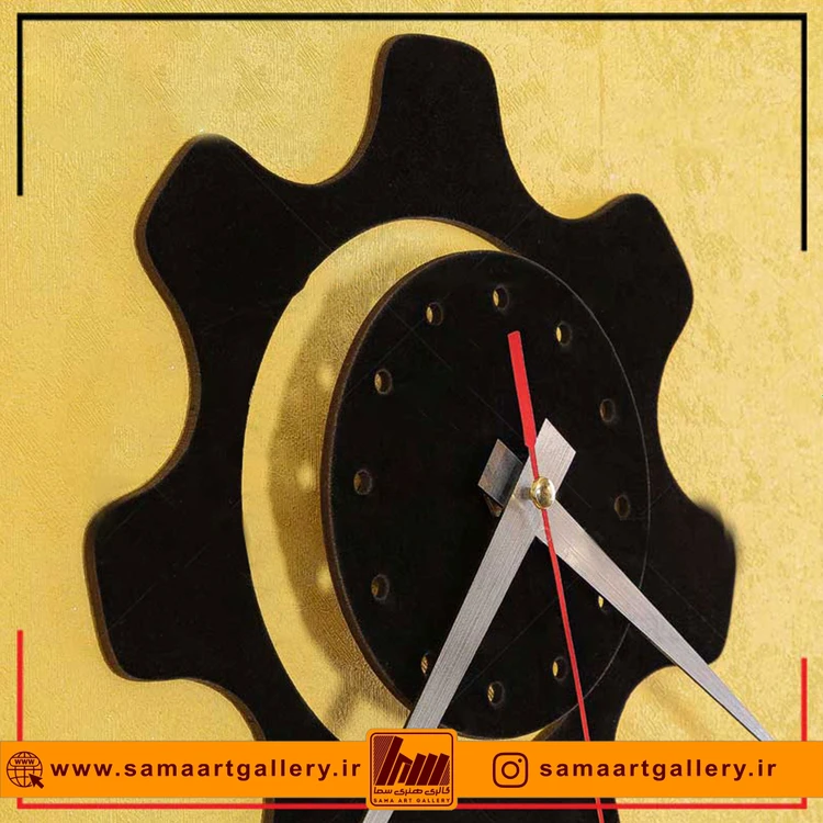 ساعتهای دیواری گالری هنری سما در انواع پلکسی گلس براق درجه یک تایوان مشکی و طلایی و نقرهای و چوب مشکی و سفید شیری ساخته شده است.