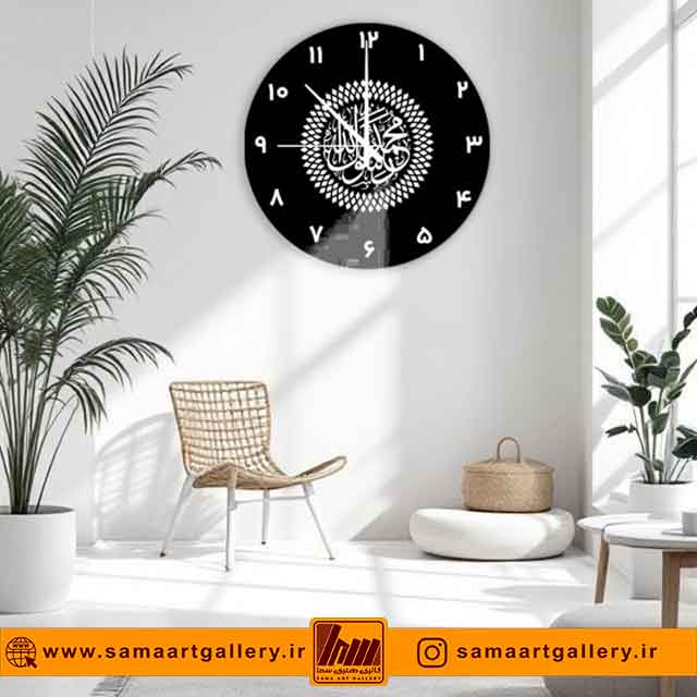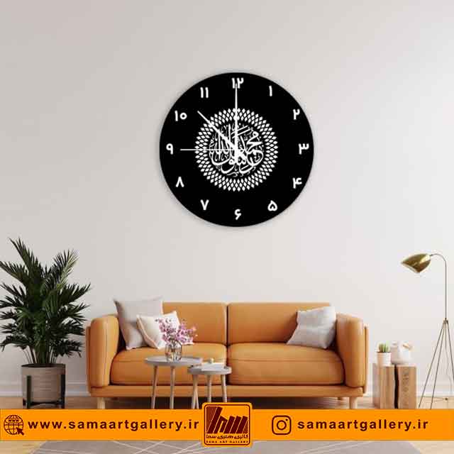 ساعت دیواری مذهبی با طرح «محمد رسولالله» جلوهای از عشق و ارادت به پیامبر اکرم ﷺ را در فضای خانه نمایان میکند. این ذکر شریف یادآور سیره، اخلاق و مهربانی پیامبر اسلام است.